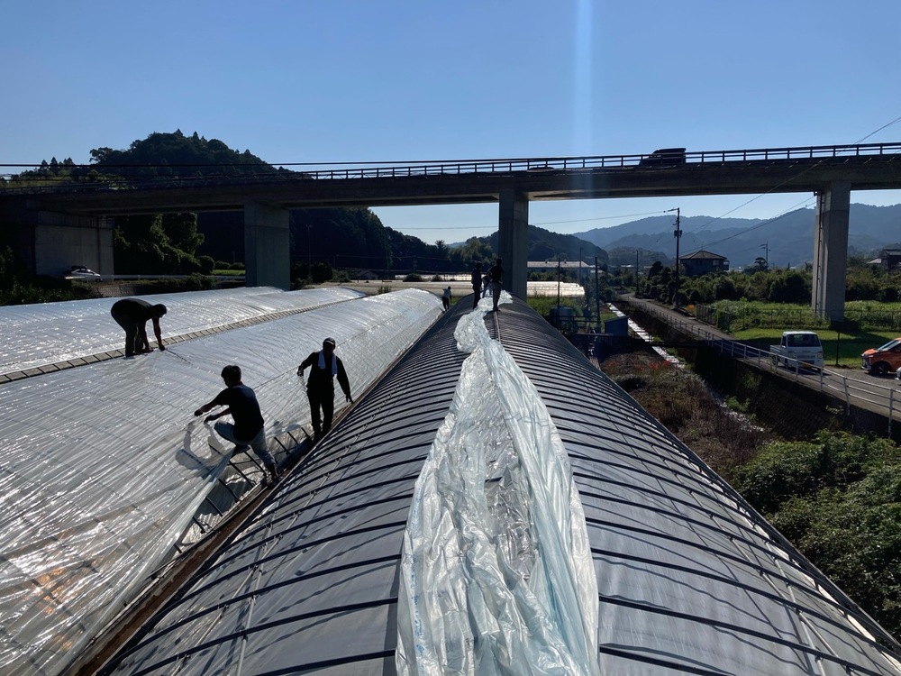 今日は、JA 青壮年部(JA若手農家の集まり)の地域活動の一つとして、花農家さんのビニールハウスの張り替えに行ってきました。