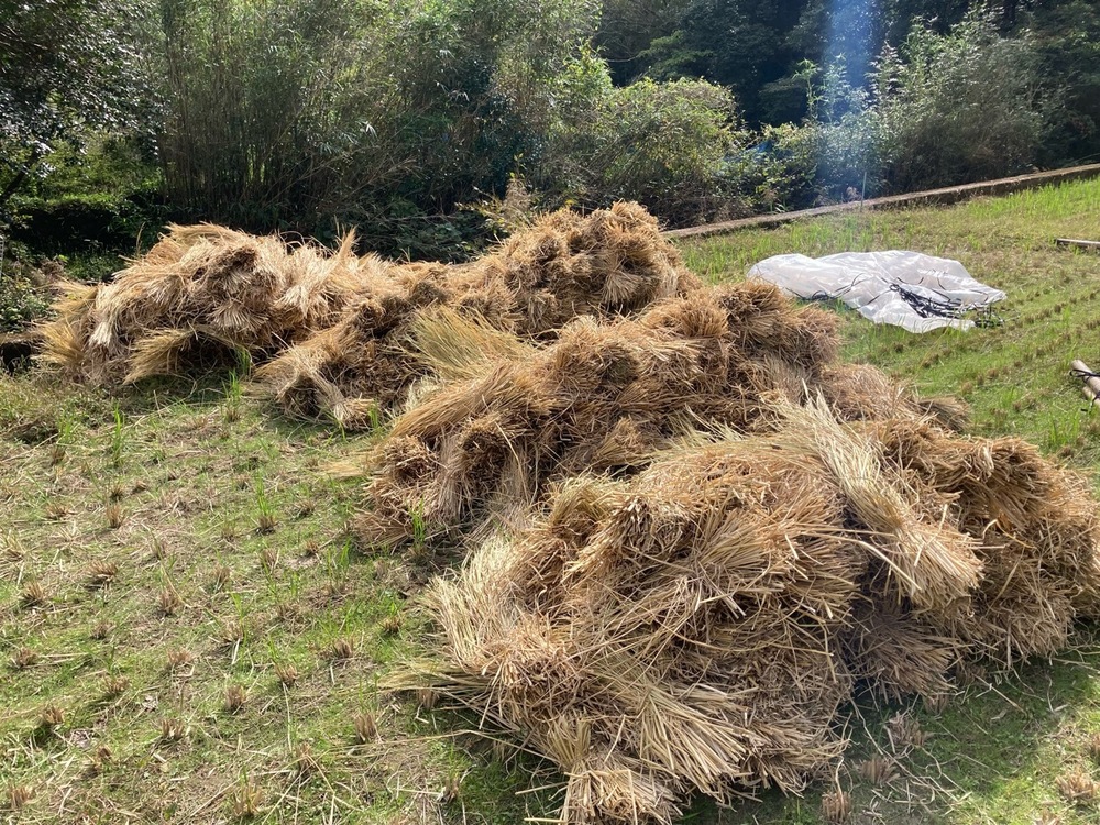 稲の脱穀が今日で終了し、文旦の貯蔵で使うワラを収穫できました〜。