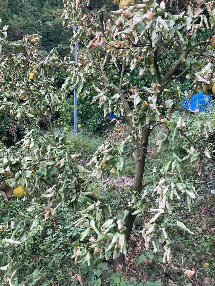 自然と共に歩む農業。そして自然の厳しさを感じながら、文旦の樹の伸びた枝を切ってました。