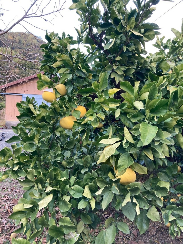 暖冬だと文旦の色づきは遅いんだけど、去年に続き今年も寒いから、いい色づきになってます〜。