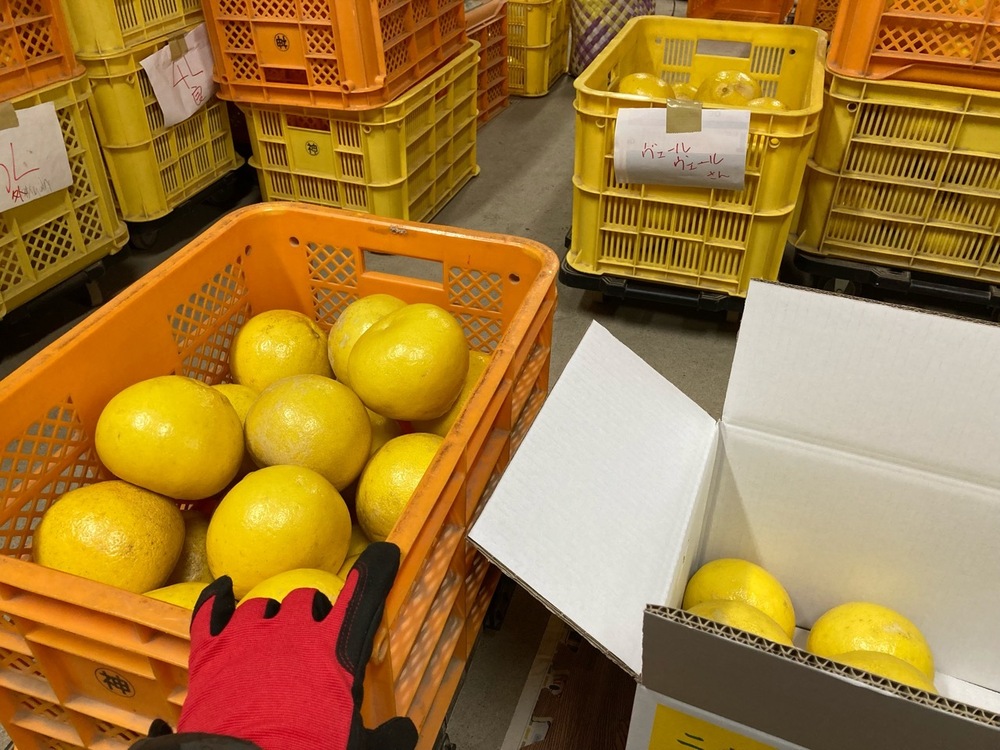 今日は雨が降ってたから、山に貯蔵している野囲いの文旦を取りに行かずに、倉庫で荷造り。