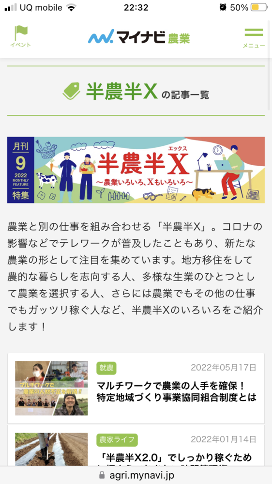 ほー、半農半Xですか。半分農家で、半分、なんか違う仕事。これって兼業農家とか、週末農家と何が違うのかな〜。