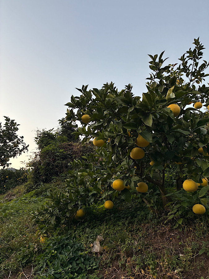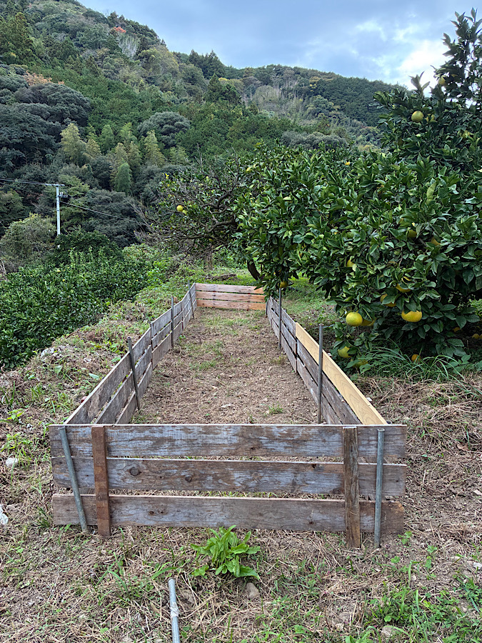 午後からは、また文旦の野囲いづくりの準備。今日は竹を割って、杭づくり。