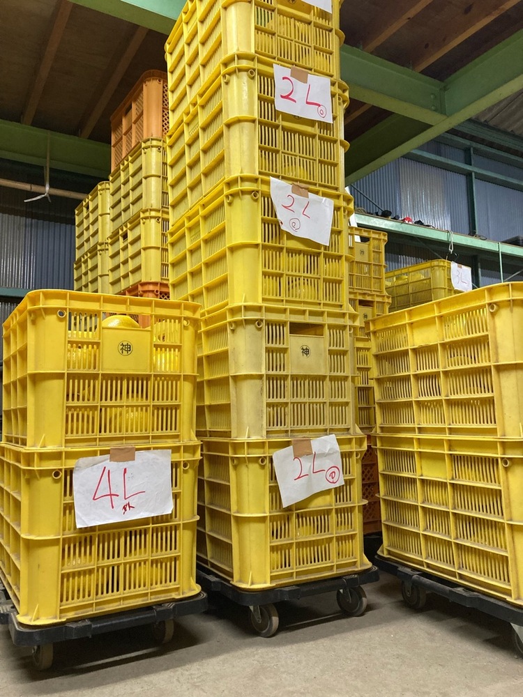 文旦の荷造りをする。作業場の気温が冷蔵庫と一緒くらい。2℃です。( ゚Д゚)