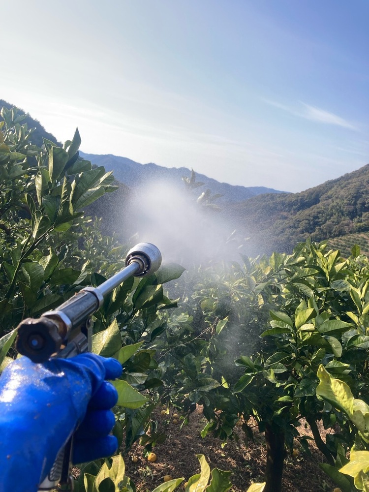 剪定ってやらないと、枝がどんどん上に伸びてっちゃって、下の方とか中の方が日当たり悪くなっちゃうんですよね。それだと文旦がしっかり熟さないから、日当たり良くなるように枝を切っていく感じです。