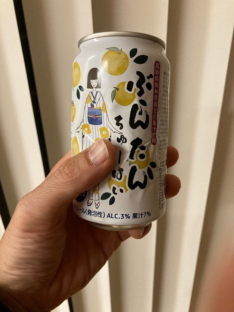 味わってみたら、これがまたイケる!なんか他のチューハイと違って、ちゃんと文旦の味がする。と思ったら、果汁7%使用だって。何缶でも飲めちゃいそう。