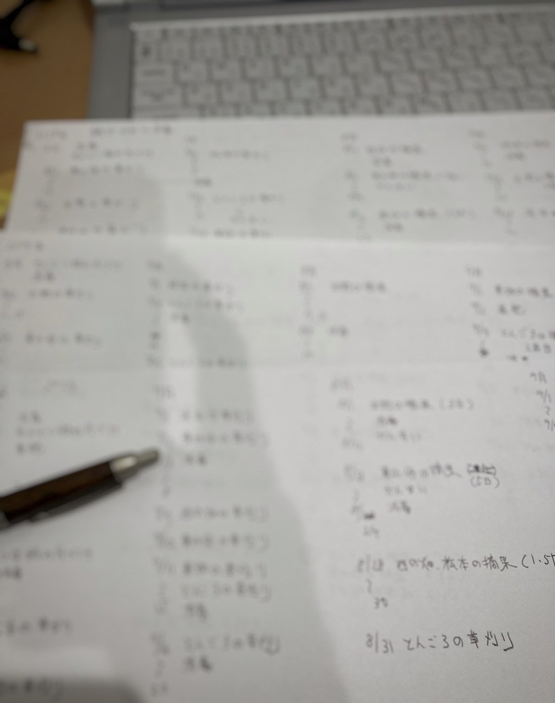 過去数年の作業日誌を見ると、7月下旬から8月いっぱいの摘果できた作業日数は21〜24日だったけど、
