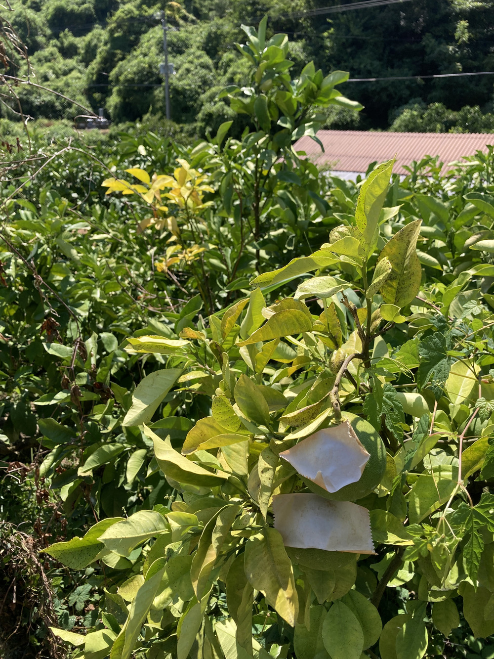 文旦の摘果(小さい実や傷のある実を落とす)してたら、夕方から西の空で、ゴロゴロー!!と雷の音が。