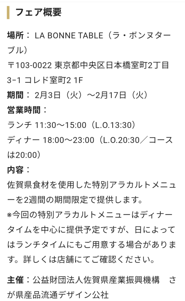 期間中、佐賀の食材をつかった料理を提供していただきます。お近くの方はぜひぜひ一度佐賀県の美味しい食材に触れ、大切な方と素敵な時間を過ごしていただけると嬉しいです😊