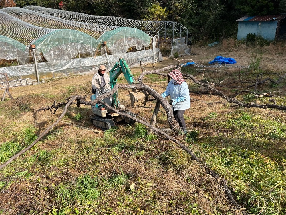 ぶどう棚の再建に向け、樹を持ち上げました😊
