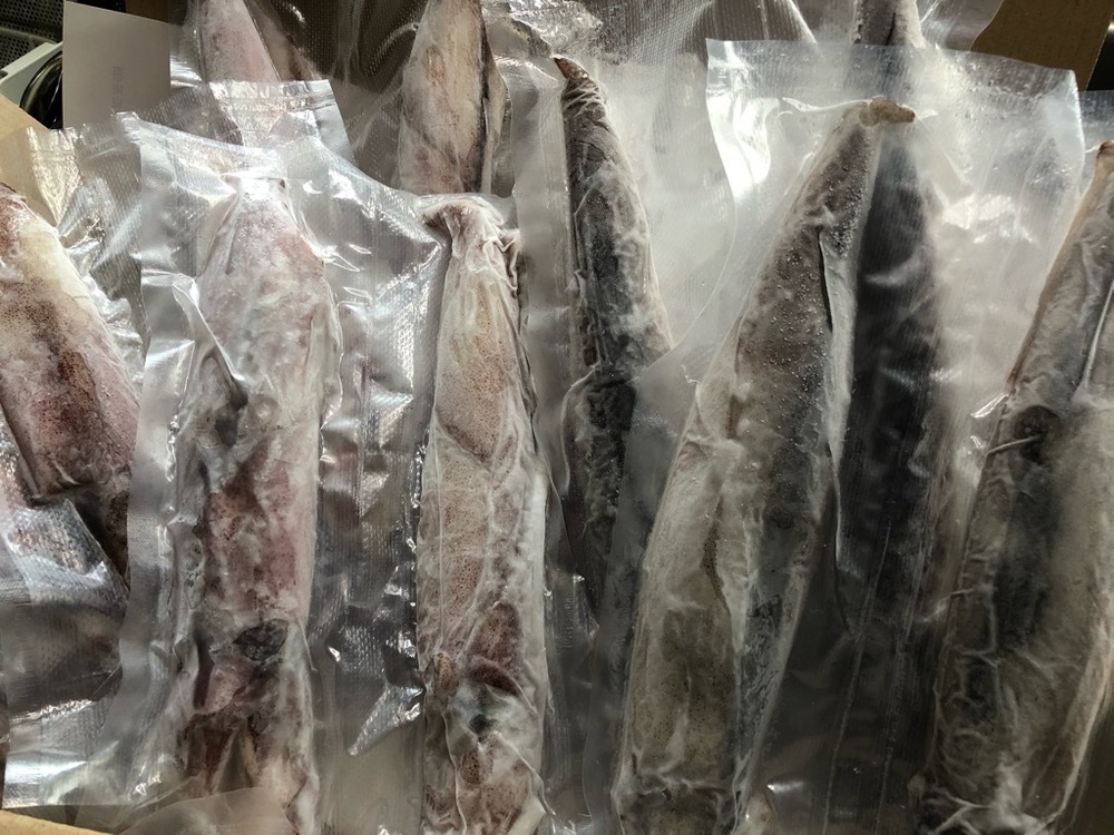 一本釣りした"ケンサキイカ" 剣先イカ シロイカ アカイカ1kg《90g~200g台/小振/お料理最適サイズ/真空冷凍》