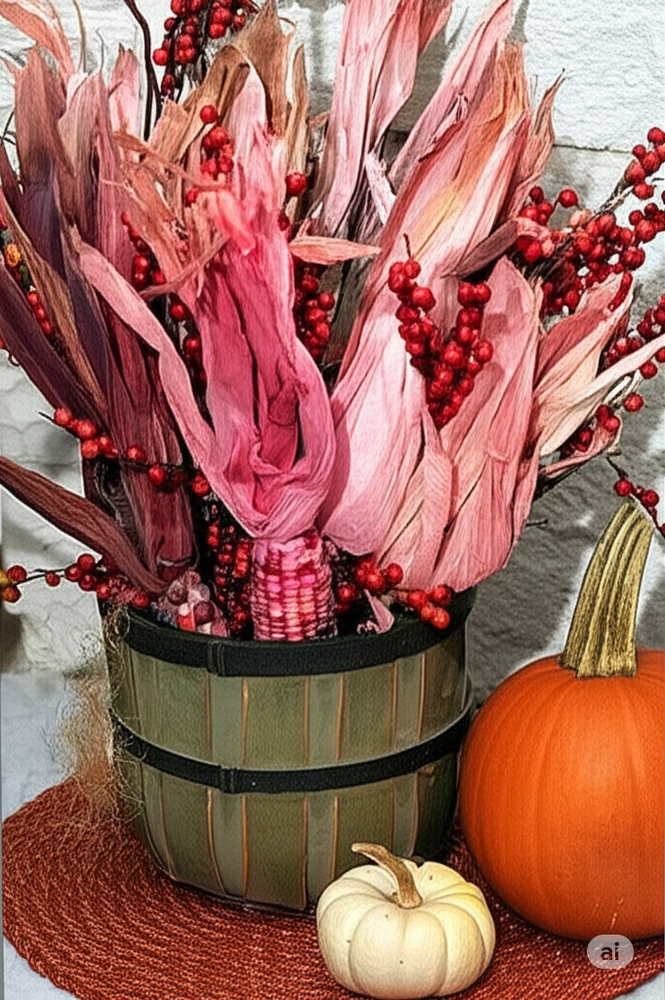 A.アメリカでは、ハロウィン〜感謝祭(Thanksgiving)にかけて、とうもろこしの飾りは、かなり一般的な秋のデコレーションです。