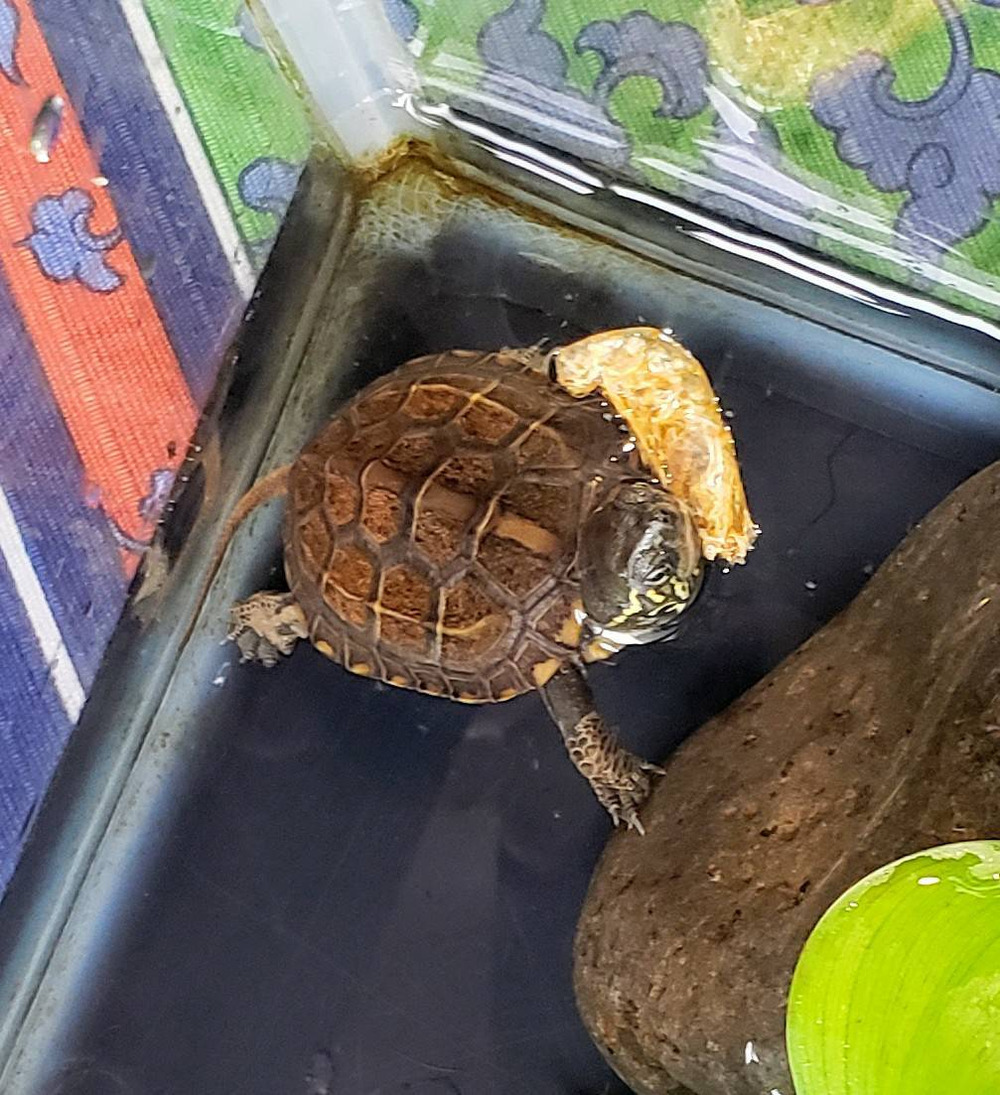 赤ちゃん亀さんだったので生きれるか心配だったのですがそれからはや2ヶ月。元気に餌を食べてくれて感謝です♪