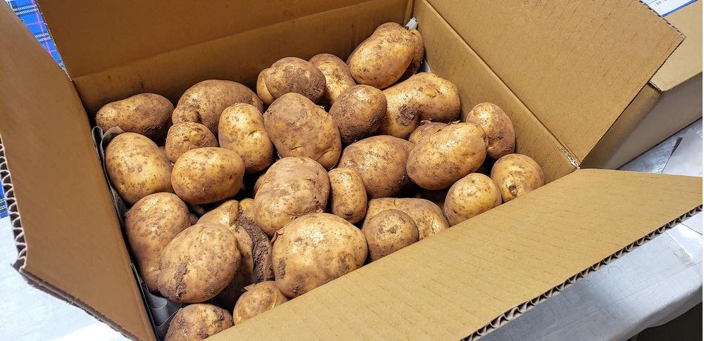 普通のジャガイモ5kgに加えてB級品(割れあり・小さい)をパンッパンに詰めさせていただいております♪