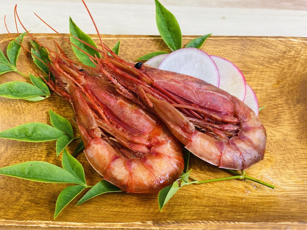 火を入れると殻も柔らかくなり、殻ごと食べると更に旨みが広がる赤えび🦐