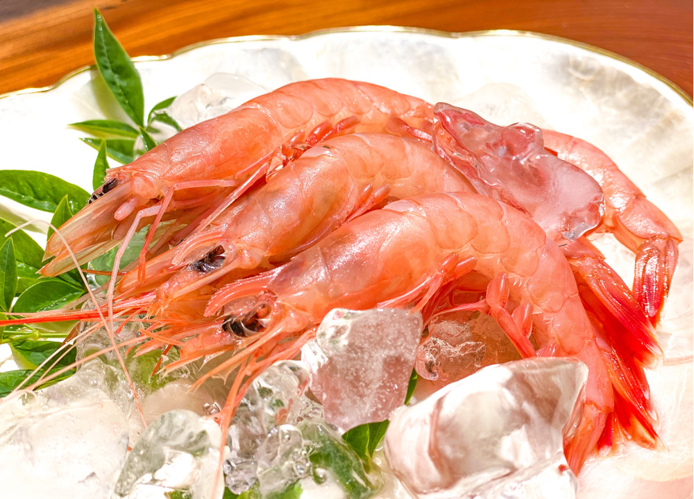 その際お刺身で残ったトロえびを乗せて蒸しエビ🦐