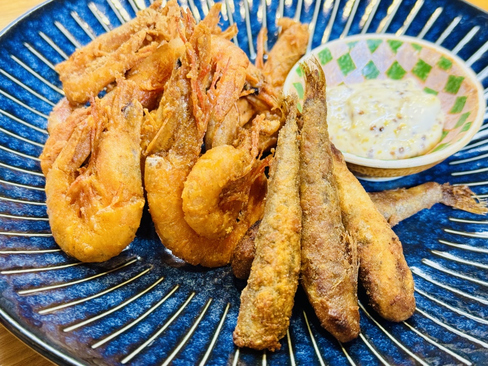 さらにメヒカリも少し一緒に揚げて、贅沢な一皿に。