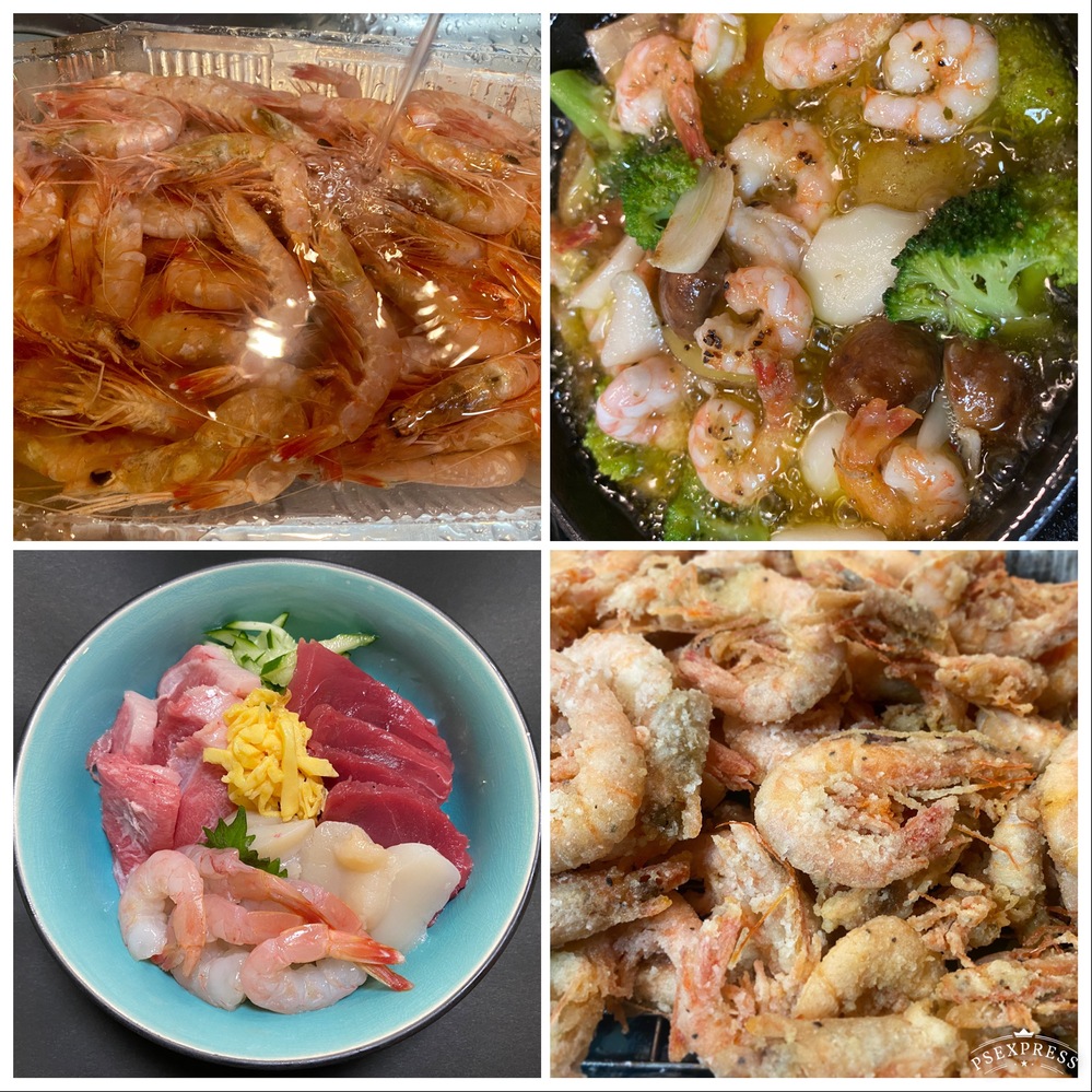 お刺身はもちろん、唐揚げ・焼きえび・むきエビなど多様です。殻が薄いため、火を入れると頭から尻尾まで召し上がる事ができます。