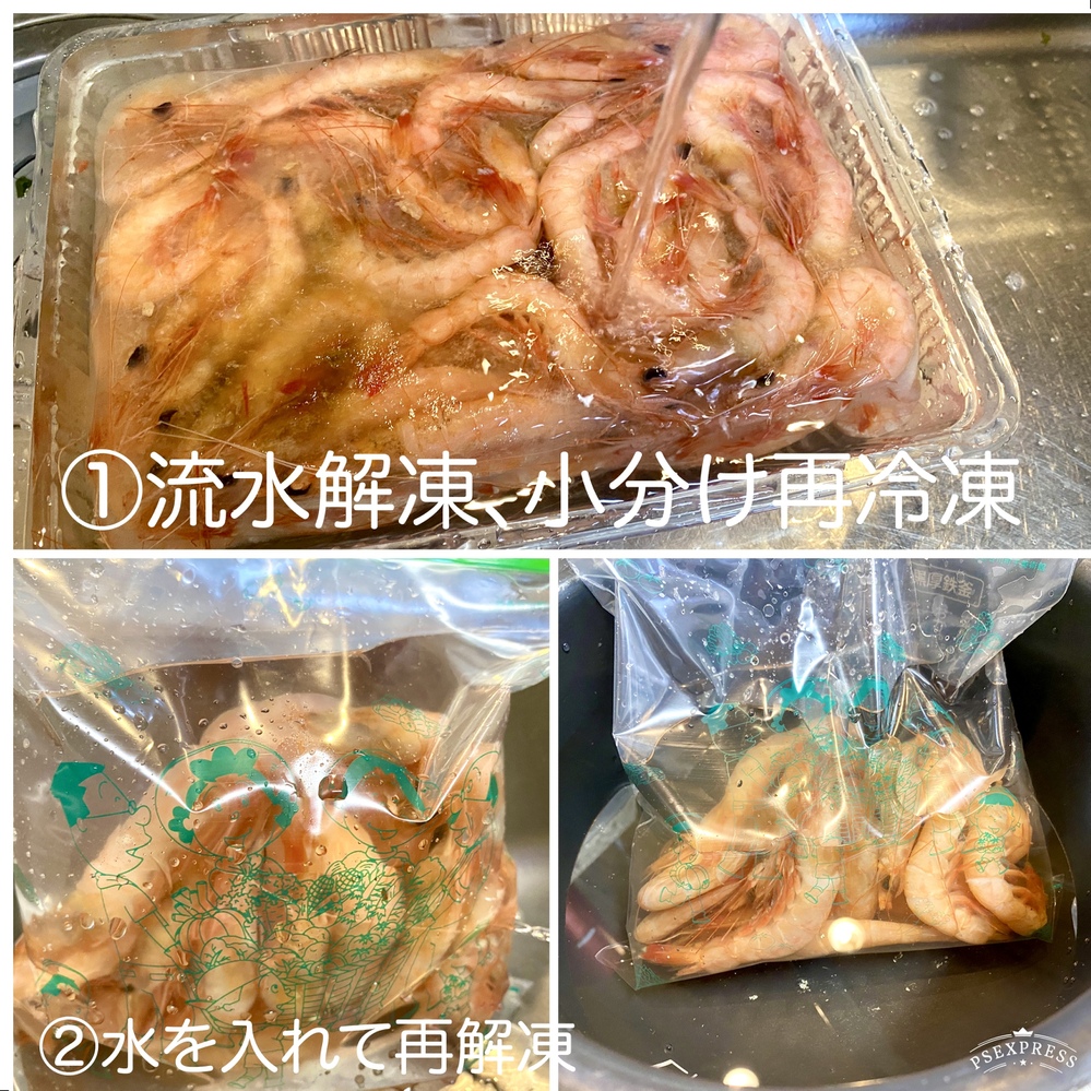 *えびはむきエビにして保管すると旨みがなくなるので、殻だけはつけておいた方が良いです