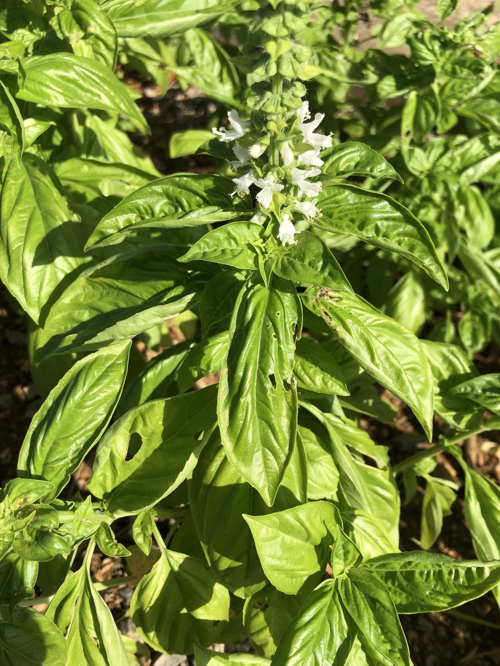 不耕起、農薬不使用、無肥料の南国ハーブシリーズの「沖縄フレッシュバジル」が雨にも負けず風にも負けず、石まみれの土地でも、無肥料不耕起の土地でも負けず元気に育っています!