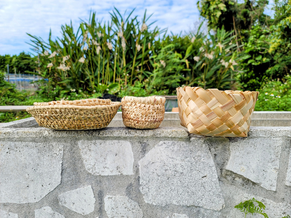 二枚目の右端は、縄にしない葉鞘(ようしょう)を使って編んだもの。