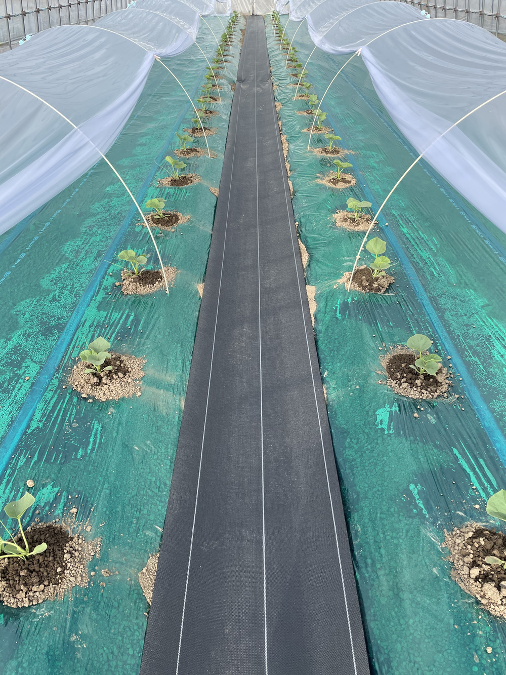 メロンの種をまき、芽が出て約1ヶ月後、ビニールハウスに定植していきます。この期間、外気温は0〜10度くらいです。外にはまだ雪が残っています🥶その時期から作業を始めないと7月の収穫には間に合いません。