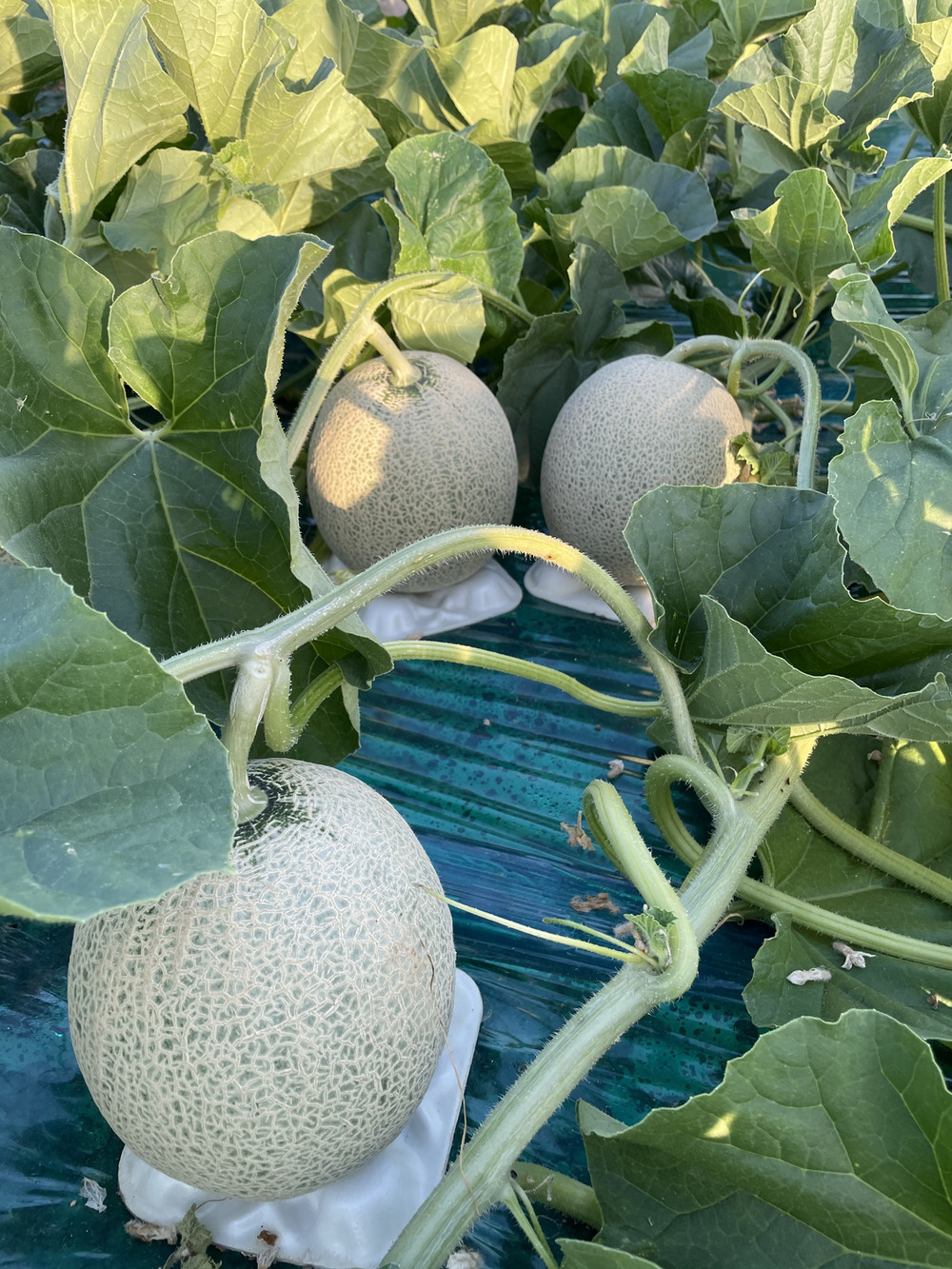 メロンの葉が大きく成長してくると、先に雄花が咲き🌼その後雌花🌼が咲きます。メロンは少し複雑で伸びてる蔓を止め✂️、間から伸びてくるつるを伸ばし、またその葉☘️の間から伸びてくる蔓を伸ばし、そこにつく雌花🌼に当ファームではミツバチを飛ばすことにより受粉がされます(複雑です😅)