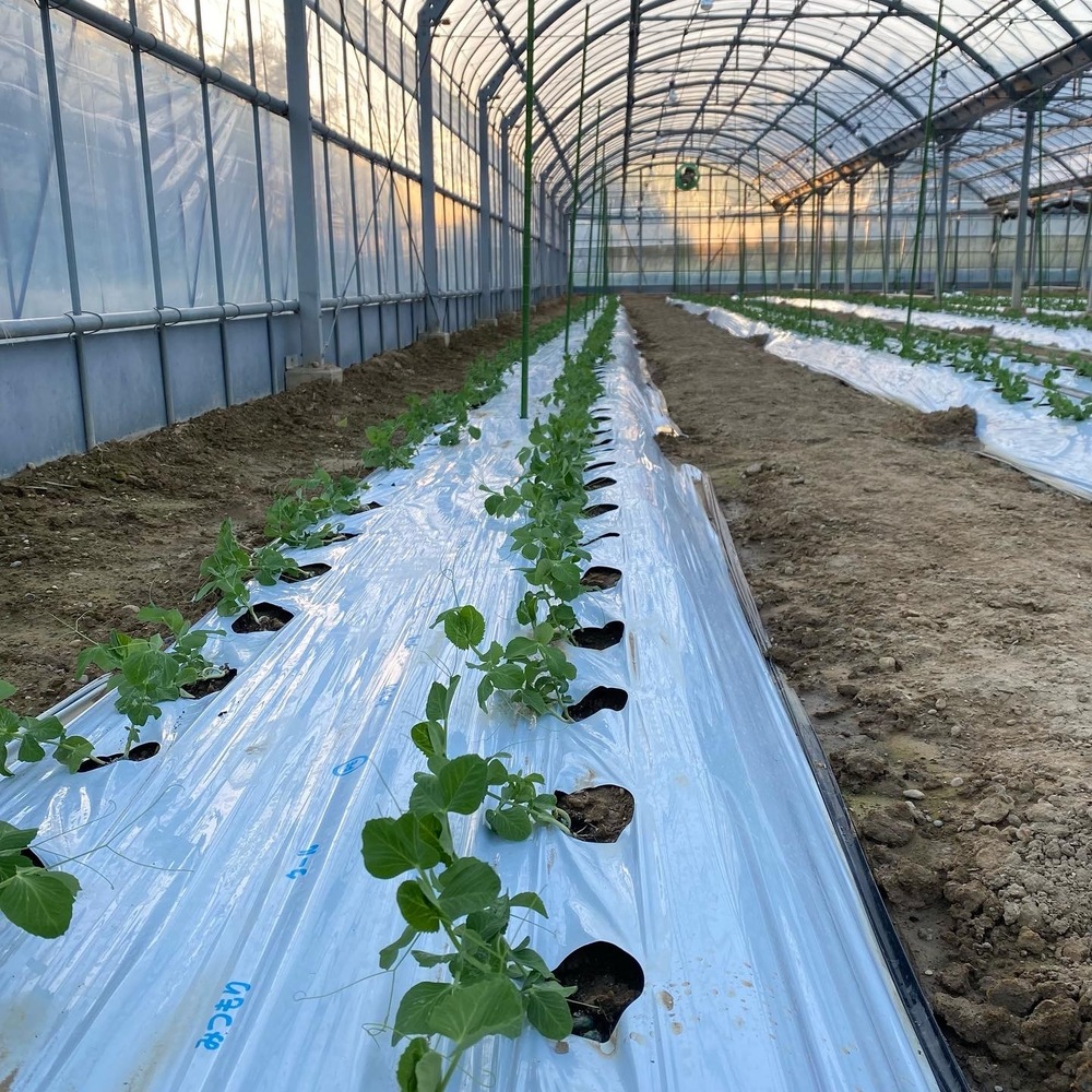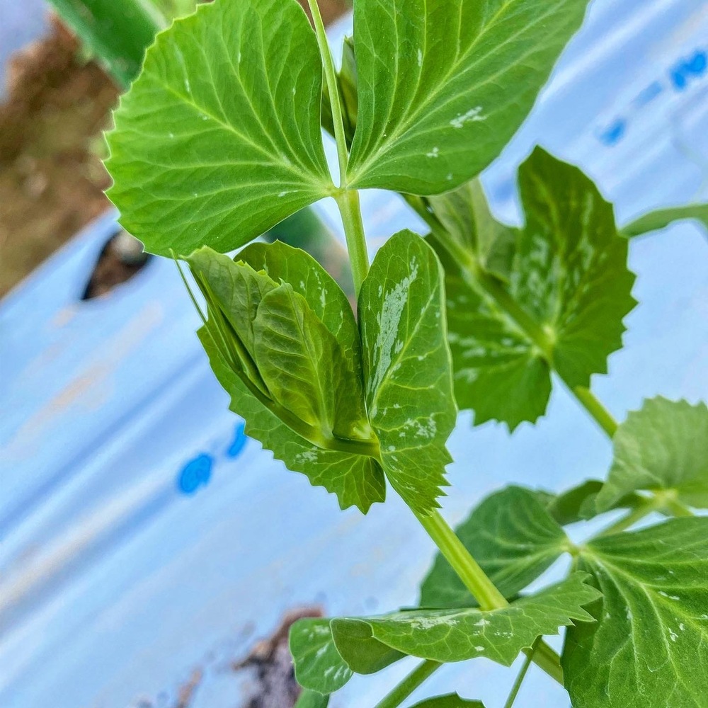 種まきして19日目、ハウスに植え付けて9日目のスナップエンドウです😄