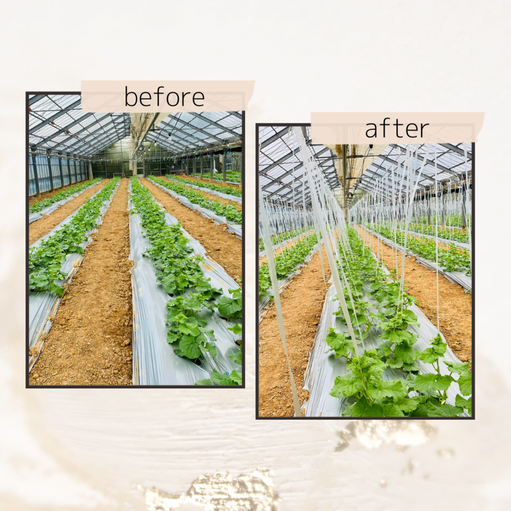 メロンの誘引作業🍈