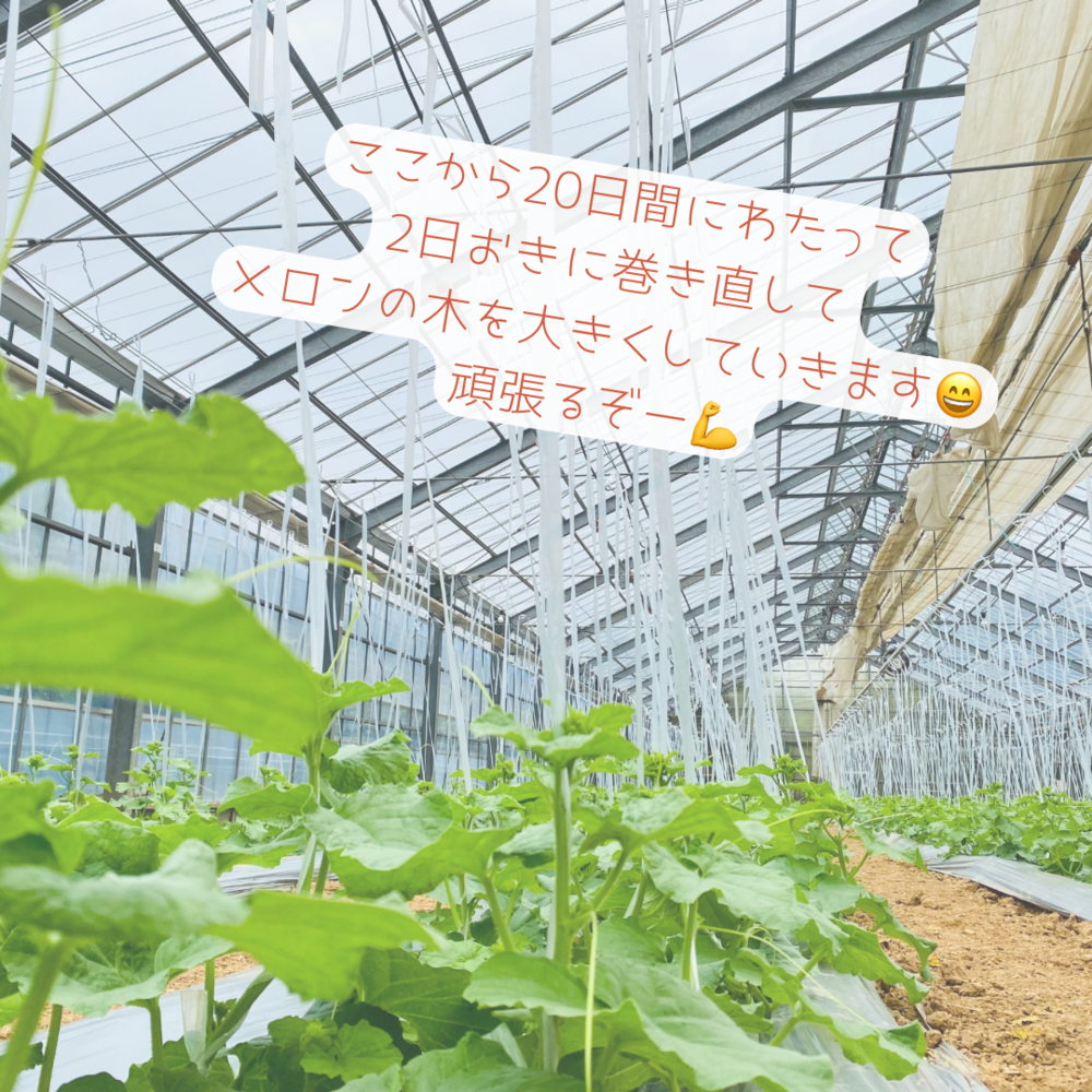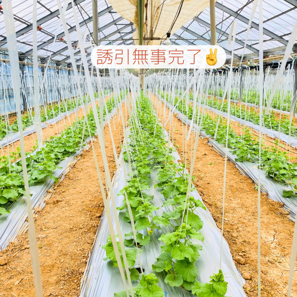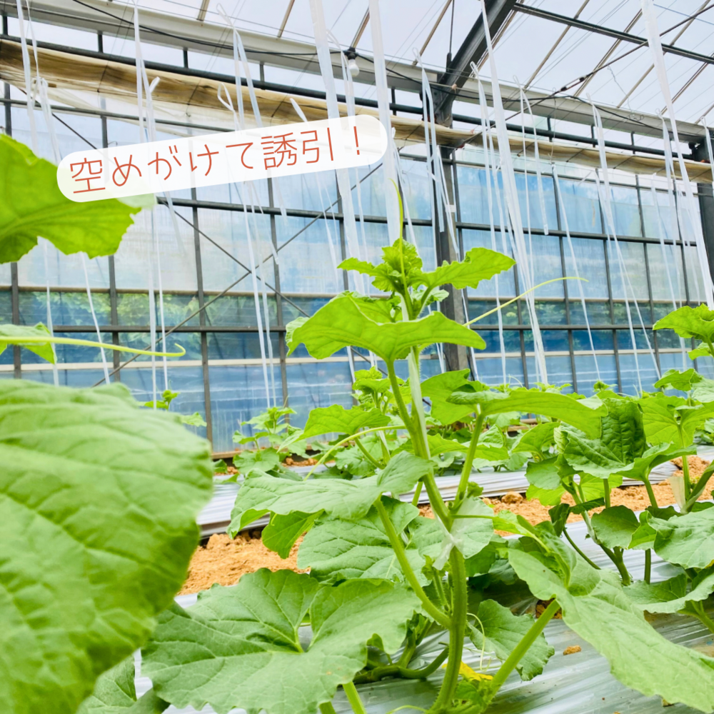 マスクメロンを植えて15日、メロンも大きくなってきた所で誘引作業を行いました(*^^*)