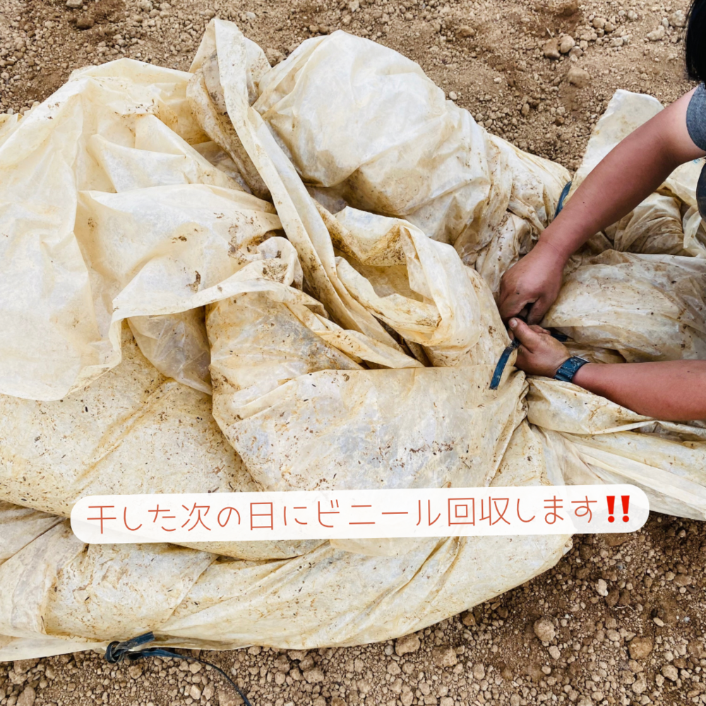 前回土壌消毒して5日ほど経過したので被覆したビニールを回収します‼️
