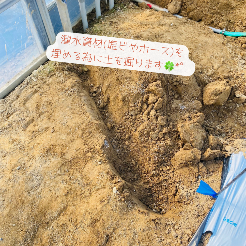 スナップエンドウ栽培植え付け前準備⑦ ''埋没管設置作業''