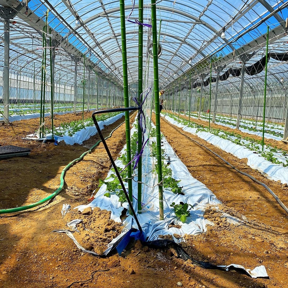 ここからネットや支柱、PPテープを利用して誘引作業が始まります‼️