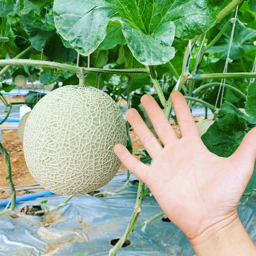 この糖度上昇期はメロン農家にとって一番心配な時期でもあります。灌水(水やり)を止めないと糖度が上昇しないので、この暑い中1~2週間灌水をストップするからです。