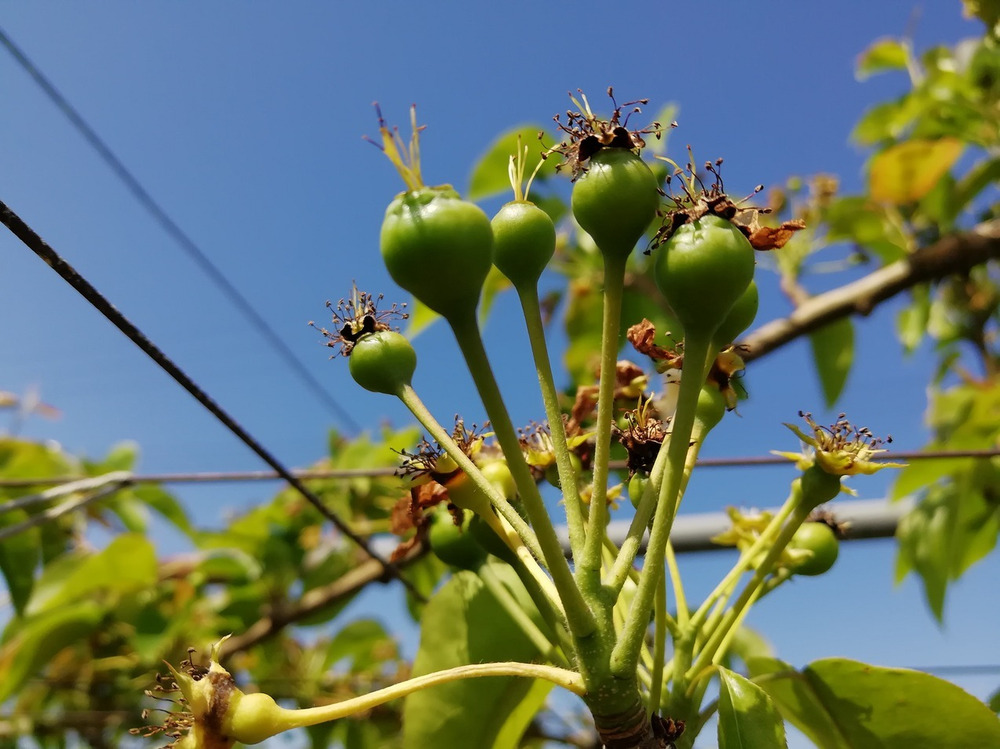遅霜被害の時期を無事、免れ、梨の幼果が粒々してきました。今日から摘果作業が始まり、
