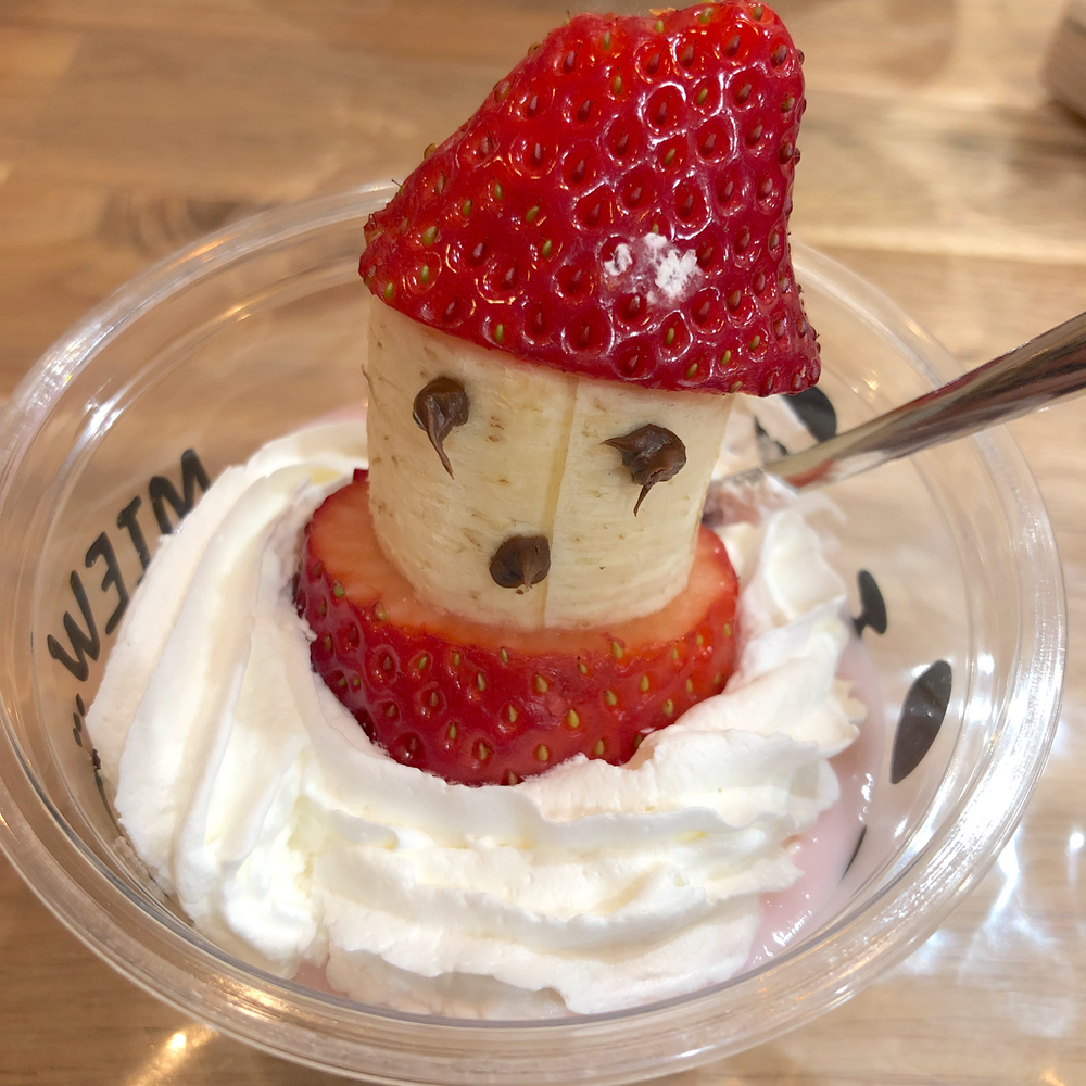 いちごのデザートのお顔はバナナかな?
