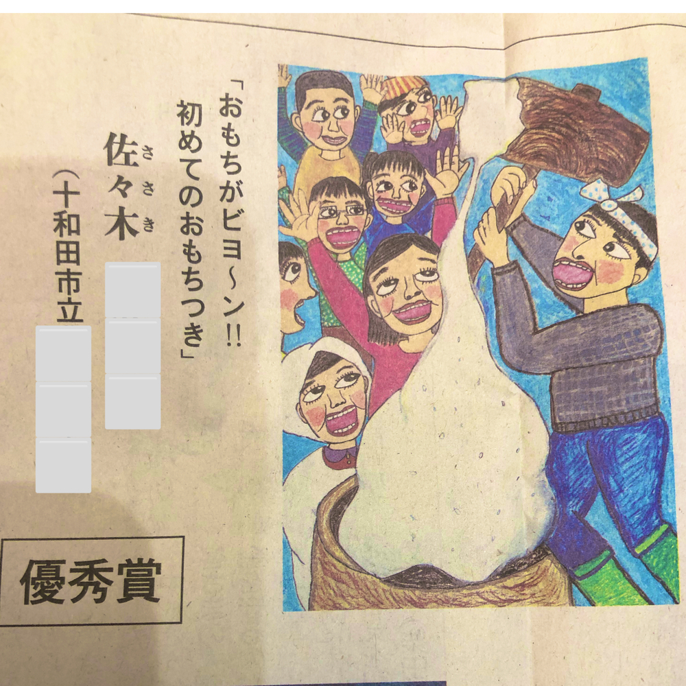 昨年の大晦日、はじめてお餅つきに参加した時の様子を描いたもの。