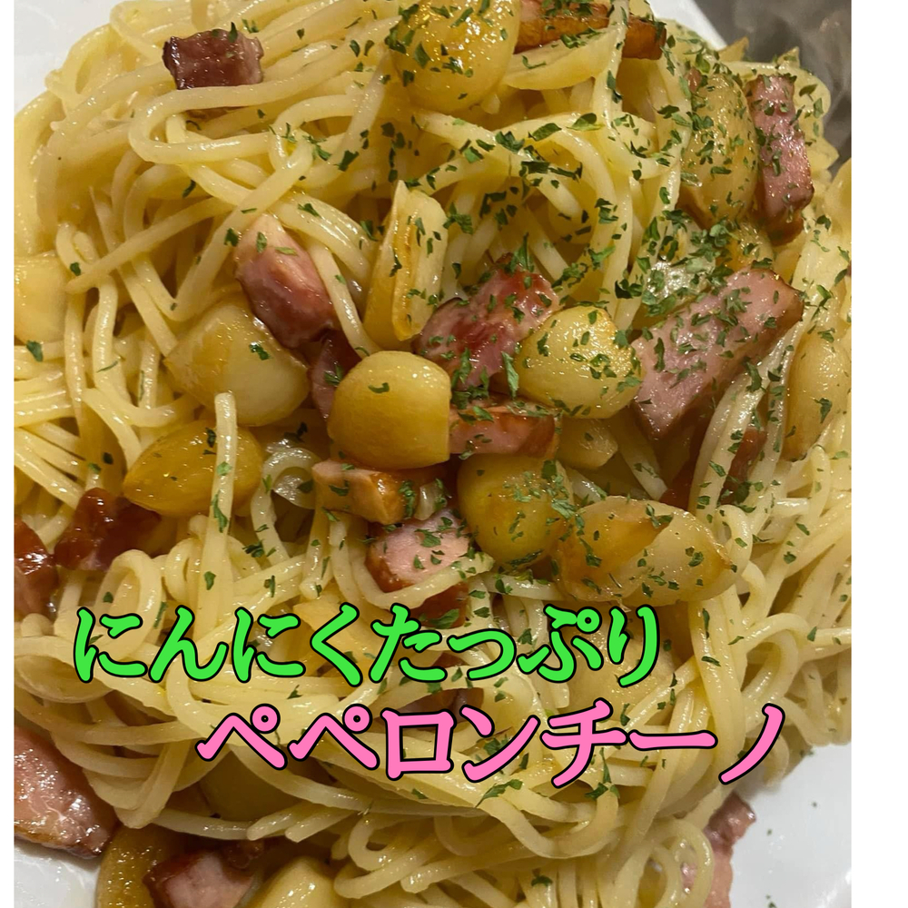 お昼は、にんにくたっぷりペペロンチーノ🍝