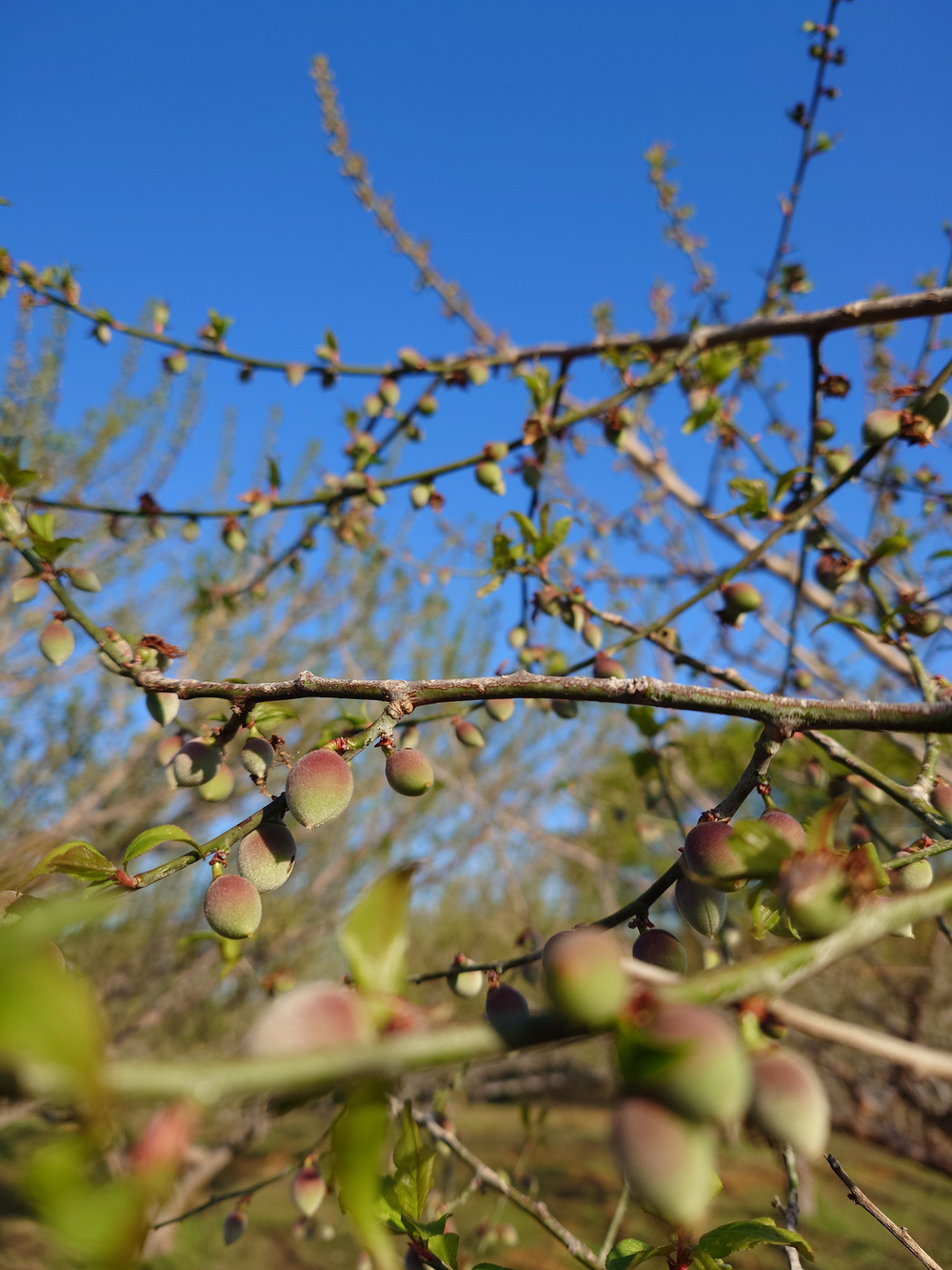 沢山の梅の赤ちゃんと、展葉初期の若葉が可愛らしいです。