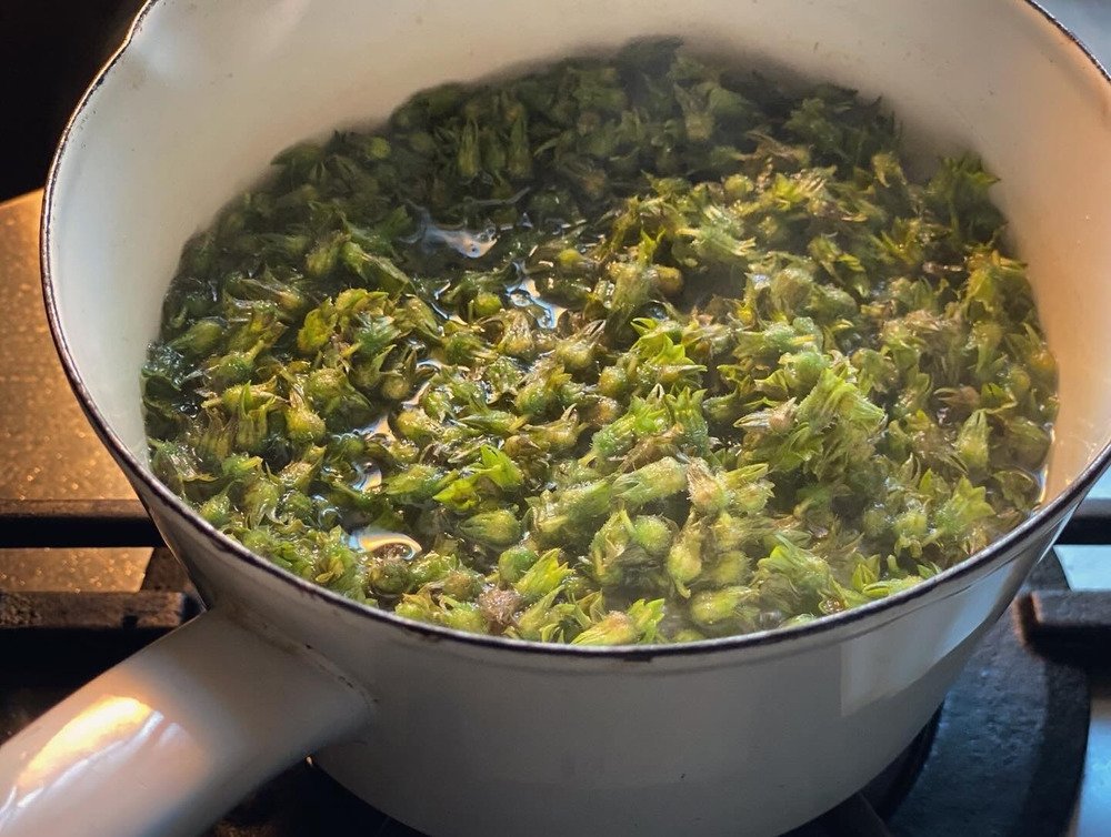 ②ザルで洗い熱湯に入れて1〜2分サッと湯がいてアク抜き