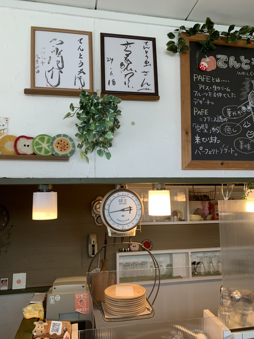 いちじくと美しさ、美味しさが、すごく伝えて頂きました。また、店内もこだわりあり、こっとうひんもいいんです。はかり、教会の椅子、ランプなど、もう皆さん、是非、てんとう虫さんで、贅沢なパフェを食べて、レトロを感じながら、お時間をすごしてくださいね。