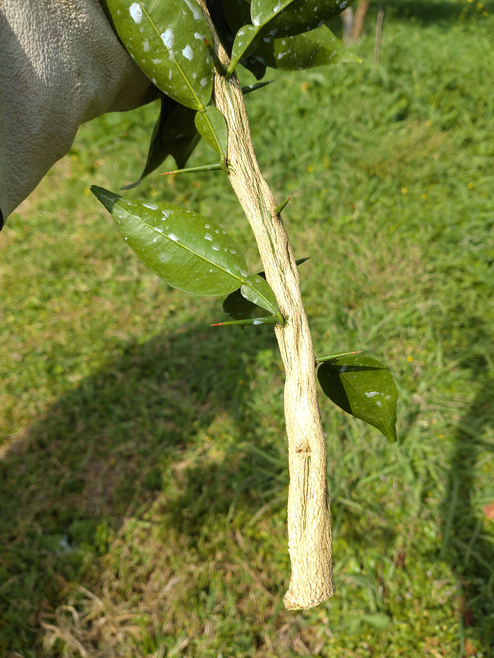 写真はそのカンキツトリステザウイルスに罹患しステムピッティング(筋状の凹み)が激しく現れた枝🌳剪定や収穫をしていてこのような状態の樹を見つけたら悲しくなります…💧
