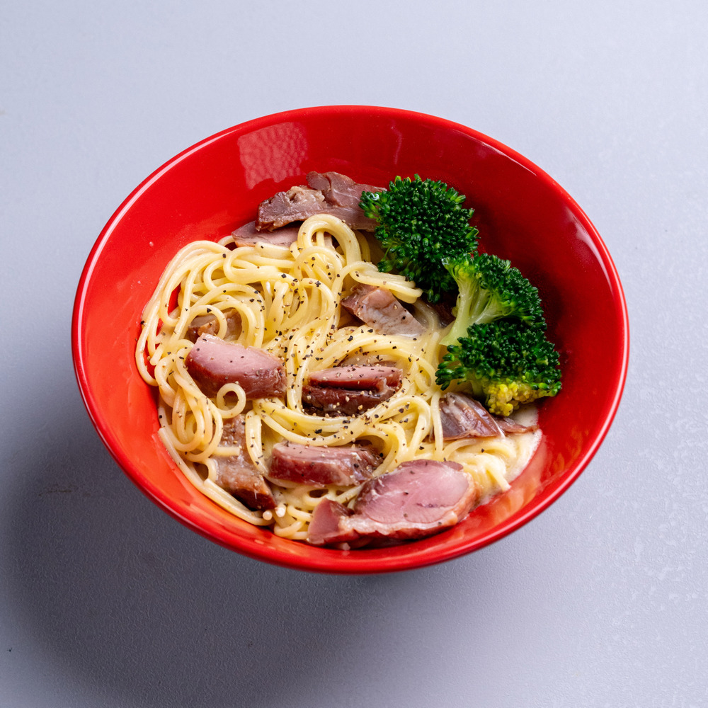 寝起きで思い立ち、余った食材で 鴨のカルボナーラ を試作!