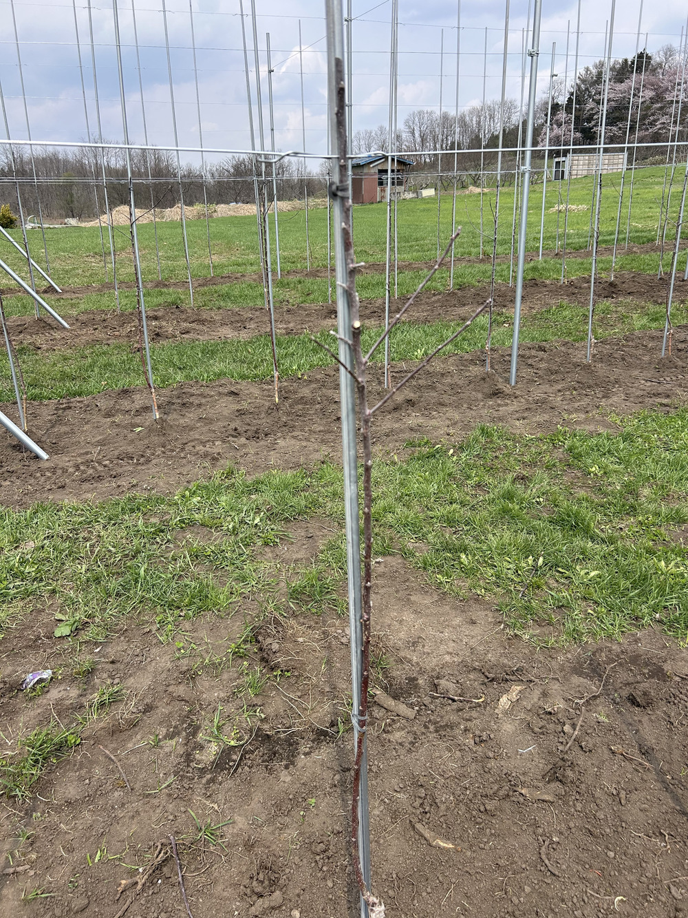植えたての苗の根は不安定なので、まずは土に対して根っこをしっかり活着してもらう!今年はりんごの実をつけず、ひたすらお日様にむかって新しい枝を伸ばしていく!