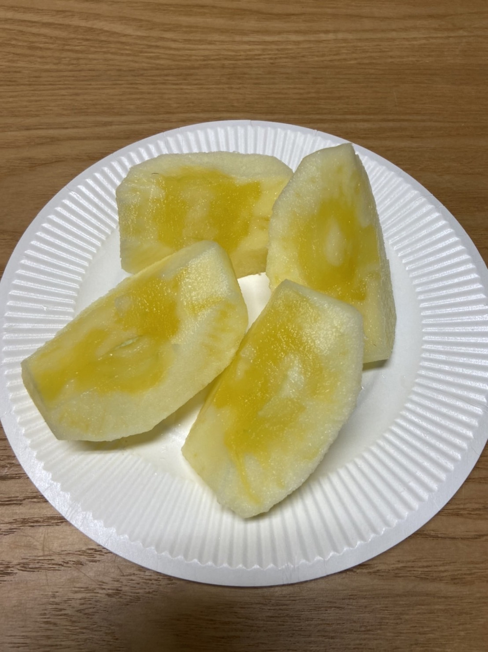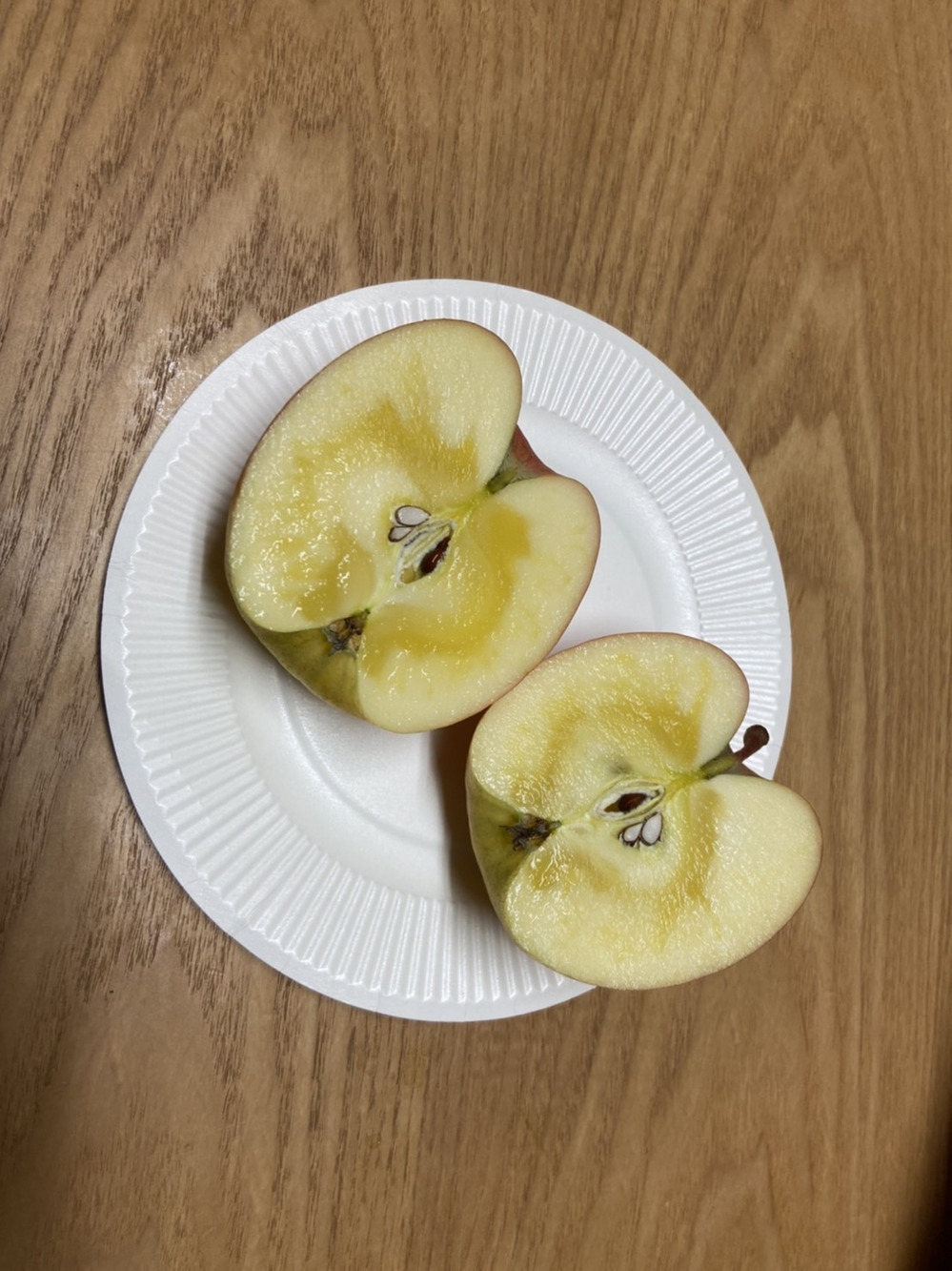 お客様に出品するくらいの地色が黄色いりんごを割って食べてみました😊😊🍎