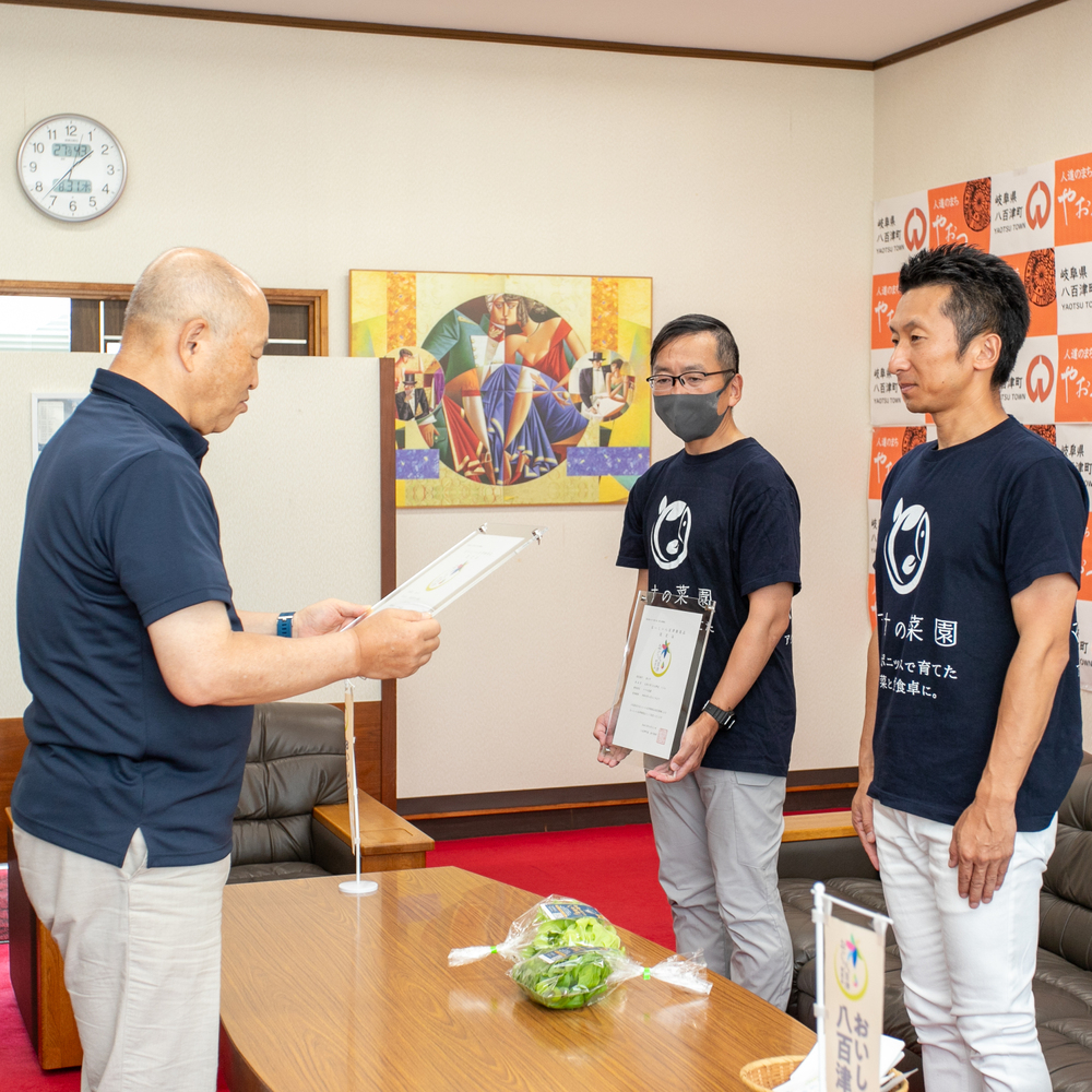また8月31日(木)には、八百津町役場にて金子政則八百津町長より「おいしい八百津推奨品認定証」を授与いただきました。