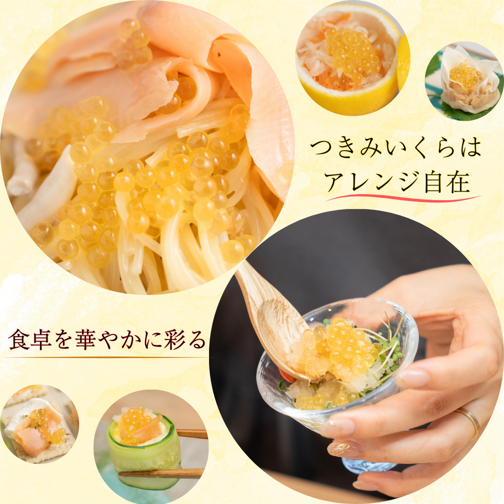 金色に輝く希少なつきみいくらは、サクラマスの卵から生まれる特別な逸品。
