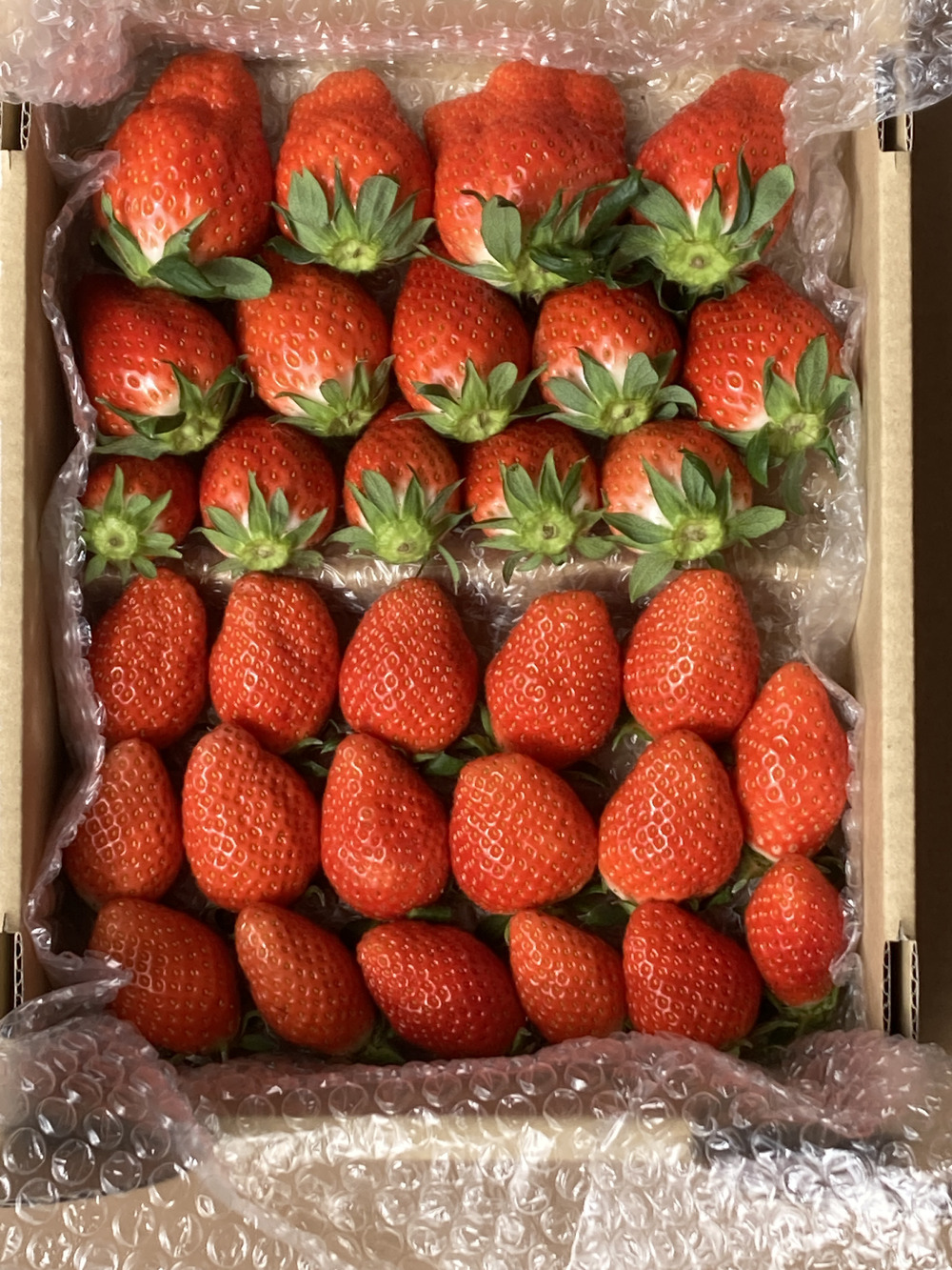 今、おすすめの商品は【じゅわっと甘い(^^)サイズいろいろやよいひめ】です。いろいろなサイズのいちごが入ります。お家でいちご🍓狩り気分はいかがですか♪