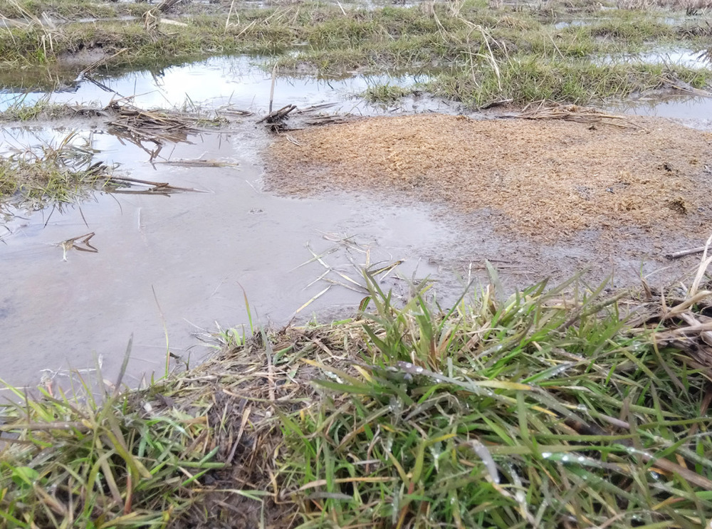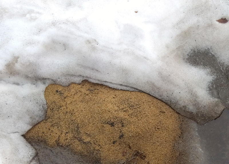 写真① 最後まで残った雪と、秋にまいたもみがら