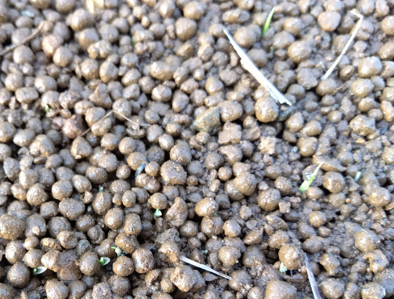 写真一枚目は、ただ土に見える種まき直後の苗箱。